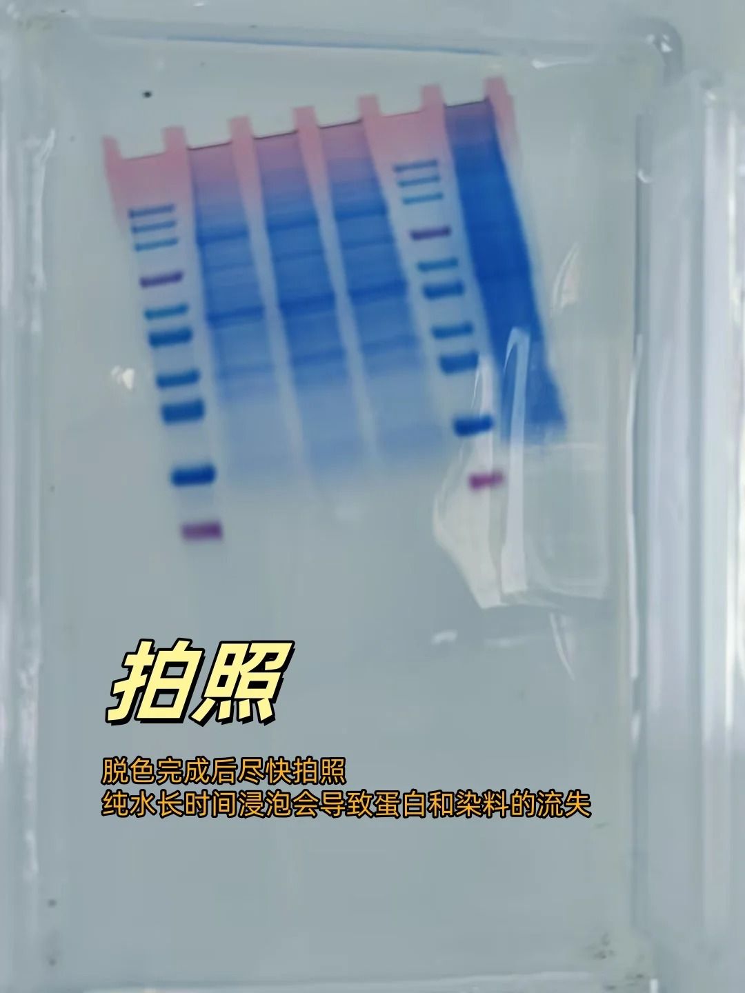 ——染色后請盡快拍照,純水長時(shí)間浸泡會(huì)導(dǎo)致蛋白和染料的流失。