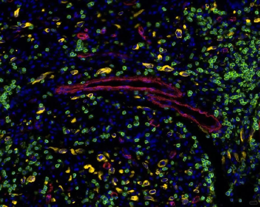 TSA多色免疫熒光技術的核心優(yōu)勢在于能夠在同一組織切片上實現(xiàn)多個靶標蛋白的共同染色。近年來,隨著技術的不斷進步,多色標記的準確性和高通量分析能力得到了顯著提升。研究者們已經(jīng)能夠成功實現(xiàn)數(shù)十種蛋白的共染色,并通過對熒光圖像的深入分析,揭示出組織微環(huán)境中的復雜信息。這一進展為疾病的精準診斷和治療提供了有力支持,