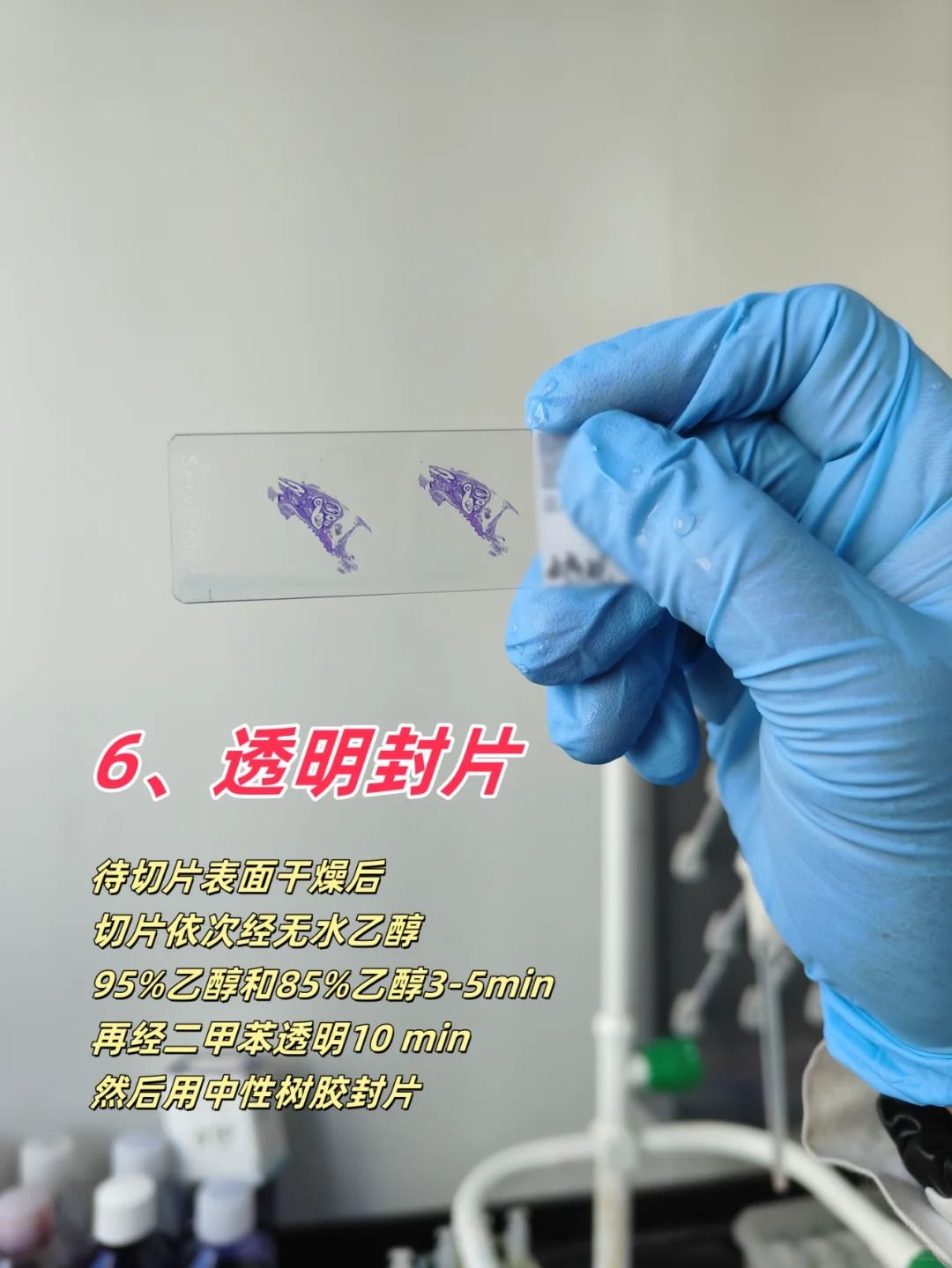 ?3)脫蠟與水化?:石蠟切片需徹底脫蠟,以防染色不均勻。水化過程要適中,確保切片充分水化但不過度。