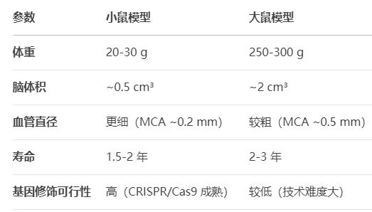 答:在腦缺血研究中,選擇合適的動物模型至關(guān)重要。小鼠和大鼠是最常用的兩種實驗動物,但它們在生理結(jié)構(gòu)、手術(shù)操作難度、成本及數(shù)據(jù)可轉(zhuǎn)化性等方面存在顯著差異。