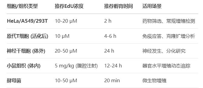 表:細(xì)胞類型特異性EdU濃度與時間推薦