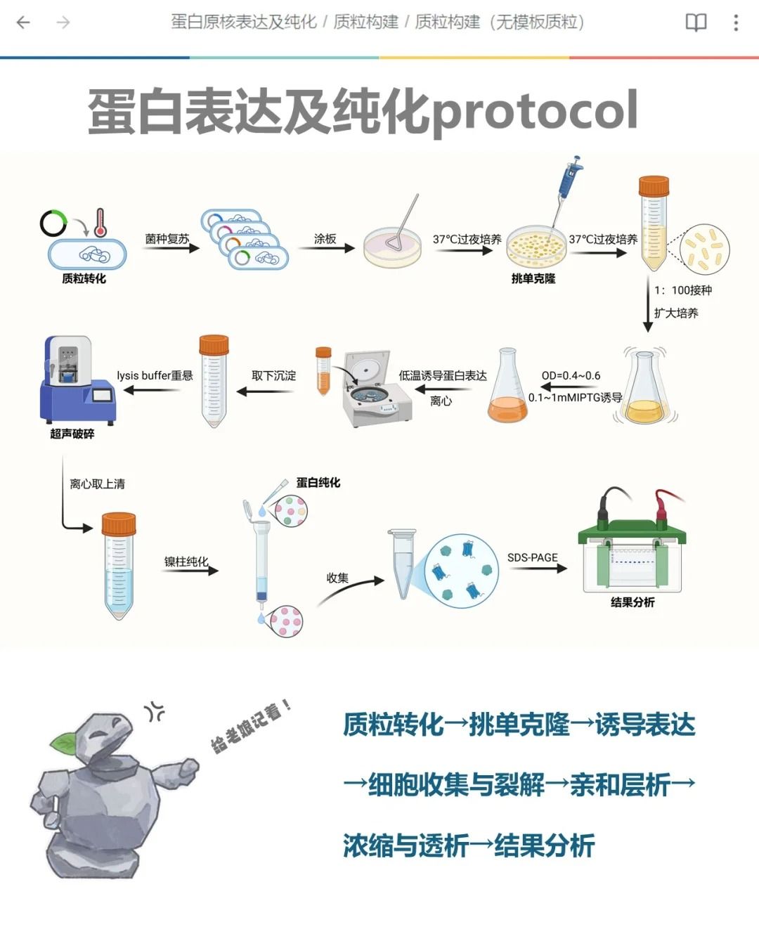 今天噗啦噗啦實驗室繼續(xù)跟大家一起學(xué)習新的實驗——蛋白原核技術(shù)表達,重組蛋白是至關(guān)重要的“工具”與“原料”。無論是抗體生產(chǎn)、藥物篩選、結(jié)構(gòu)研究還是酶動力學(xué)分析,獲取大量高純度、有活性的目標蛋白都是成功的關(guān)鍵一步!關(guān)注我們視頻號還可以無痛審批查閱蛋白表達實驗哦:18570028002(微信)