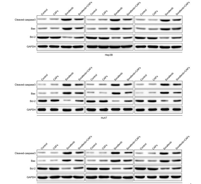 分組:Control、CAFs、Sorafenib、Sorafenib+CAFs