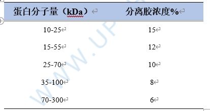 (1)配制分離膠和濃縮膠:根據(jù)目的蛋白分子量大小,配分離膠和5%濃縮膠;