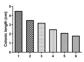 1. 各組小鼠結(jié)腸長度(從左至右:1-6號)