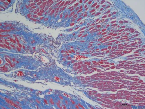 Step6:復(fù)染:接下來,使用Masson麗春紅酸性復(fù)紅液對(duì)切片進(jìn)行復(fù)染。這一步的目的是增強(qiáng)膠原纖維和其他組織結(jié)構(gòu)的顯色效果。