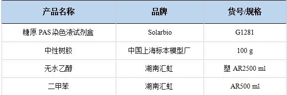 糖原染色是病理學(xué)中常規(guī)的染色方法之一,氧化劑能氧化糖類及有關(guān)物質(zhì)中的1,2-乙二醇基,使之變?yōu)槎?,醛與Schiff試劑能結(jié)合成一種品紅化合物,產(chǎn)生紫紅色。PAS技術(shù)常用來顯示糖原和其他多糖,該染色液不僅能夠顯示糖原,還能顯示中性黏液性物質(zhì)和某些酸性物質(zhì),以及軟骨、垂體、霉菌、真菌、色素、淀粉樣物質(zhì)、基底膜等。