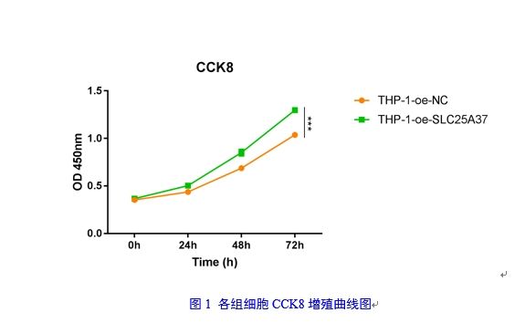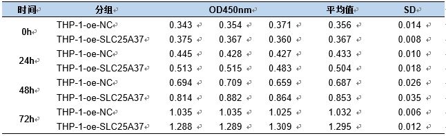 檢測THP-1-oe-NC、THP-1-oe-SLC25A37細(xì)胞增殖能力的變化。