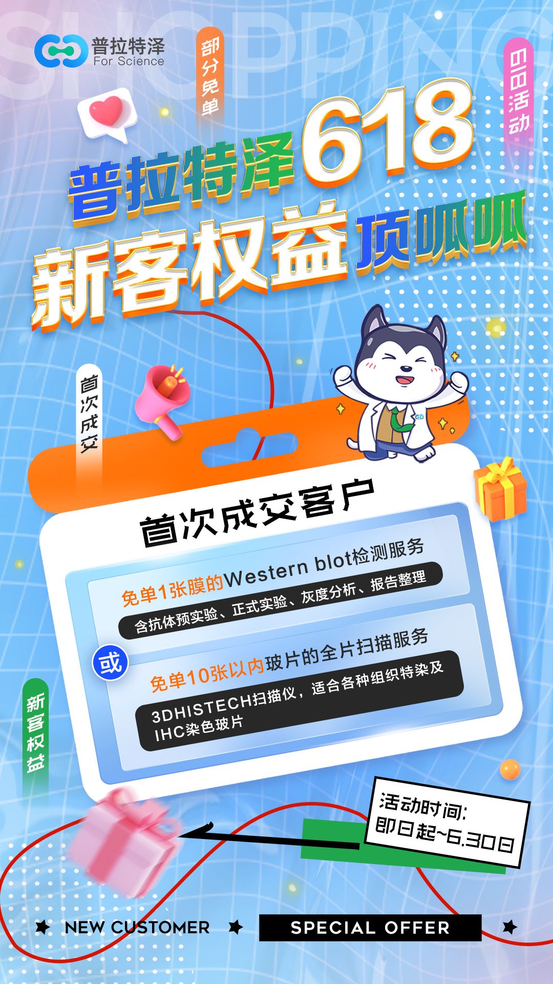親愛的客戶們,生物實(shí)驗(yàn)服務(wù)618大促已經(jīng)火熱開啟!無論是想要體驗(yàn)我們服務(wù)的新用戶,還是一直支持我們的老客戶,都能在這次活動中找到滿意的福利和優(yōu)惠。活動僅限月底哦~趕快行動起來吧?。?!
