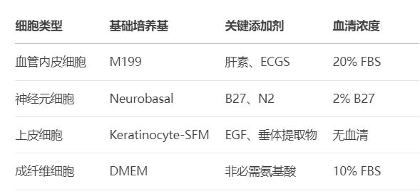 表:原代細(xì)胞培養(yǎng)常用培養(yǎng)基選擇指南