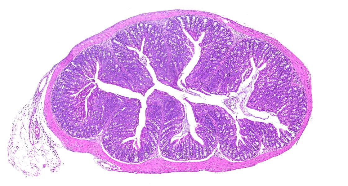 蘇木精-伊紅染色法簡稱HE染色法,是最常用的染色方法。蘇木精(hematoxylin)是陽離子染料,能夠?qū)⒓毎藘?nèi)的嗜堿性物質(zhì)染成藍紫色。伊紅(eosin)是陰離子染料,能夠?qū)⒓毎|(zhì)和膠原纖維等染成粉紅色。