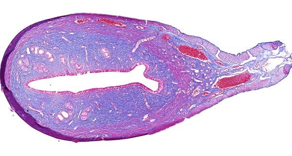 Masson染色時膠原纖維呈藍(lán)色(被苯胺藍(lán)所染)或綠色(被亮綠所染),肌纖維呈紅色(被酸性品紅和麗春紅所染),這與陰離子染料分子的大小和組織的滲透性有關(guān)。如已固定的組織用一系列陰離子水溶性染料先后或混合染色,則可發(fā)現(xiàn)紅細(xì)胞被最小分子的陰離子染料著染,肌纖維與胞質(zhì)被中等大小的陰離子染料著染,而膠原纖維則被大分子的陰離子染料著染。由此說明了紅細(xì)胞對陰離子染料的滲透性最小,肌纖維與胞質(zhì)次之,而膠原纖維具有最大的滲透性。根據(jù)組織不同的滲透性能,選擇分子大小不同的陰離子染料進(jìn)行染色,便可把不同組織成分顯示出來。